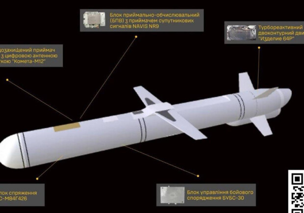 ГУР сообщает, что спутниковая навигационная система, едва ли не впервые для крылатых ракет противника, представлена сочетанием изделий двух различных российских компаний — помехоустойчивого приемника спутникового сигнала с цифровой антенной решеткой «Комета-м12» производства «Вниир-прогресс» и приемно-вычислительного блока. NAVIS NR9. Для их интеграции используется блок сопряжения производства АНЧП «Темп-Авиа», известного изготовлением полетных контроллеров для управляемых авиабомб.